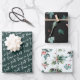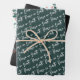 Papel de envoltura con patrón de bayas botánicas de la acuarela de invierno de la Paz en la Tierra. Presenta tres diseños diferentes, White Peace on Earth guión moderno patrón de arte de palabras en color verde claro festivo, hojas de acuarela delicadas y patrón de berry en pizarra negra y hojas de invierno holly bayas y verduras en verde pálido