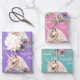 La acuarela floral de unicornio Personaliza el nombre de hojas de papel de envolver púrpura