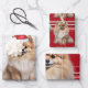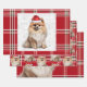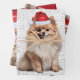 An adorable Pomeranian dog is ready for the holiday season with his Santa hat. This cute Christmas dog is paired with a red and white holiday plaid on this set of gift wrap for the dog lover.