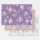 3 hojas de papel de regalo con hermosas rosas antiguas en enredaderas en tonos de púrpura y azul. Perfecto para un tema de baby shower de Pequeña Flor Silvestre Está En Camino o Bebé En Flor. Hermoso diseño floral en un suave color pastel, diseño general.