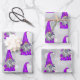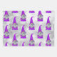 gnomo lindo con traje morado sobre el fondo plateado con chispas