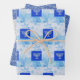 3 diseños diferentes en este papel de envoltura de Hanukkah. Menorah, purpurina azul y plata.
