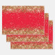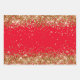 Revestimiento de hojas de papel al estilo glam para la celebración de su cumpleaños. Los bordes tienen purpurina de oro falso y chispas. Los fondos de las tres hojas tienen un fondo de color rojo sólido personalizable. Podría cambiar el fondo de una, dos o todas las hojas de ajuste de regalo. Estos destellos artísticos y diseños purpurinoso de arte digital se imprimen como una foto.