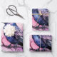 Envuelto hojas de papel con la imagen de un cuervo negro con alas rosadas violetas. Una mancha acuática rosa detrás de este bonito pájaro místico.
