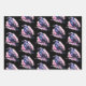 Envuelto hojas de papel con la imagen de un cuervo negro con alas rosadas violetas. Una mancha acuática rosa detrás de este bonito pájaro místico.