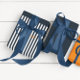 Hoja De Papel De Regalo Rayas azul marino | Monograma del caballero modern