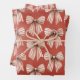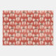 A lovely Christmas pattern with a luscious red background and featuring cute, but elegant, red and white striped holiday bows and ribbons. This originated as a vintage design, but looks good for today's audience. It is a bit girly, arguably with a tinge of preppy, we understand. So not just the sweethearts may enjoy it receiving their gifts gift wrapped like this. Each of the 3 sheets of wrapping paper is the same pattern, but in different sizes to the pattern. We think they work well as a group, but can be used individually as well.