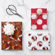 Estas divertidas sábanas de papel envolvente para jugadores de baloncesto o fans tienen tres patrones individuales y complementarios — la hoja 1 presenta un patrón de aspecto 3D de baloncesto de tamaño variable que tiene dos paneles coloreados — uno rojo y otro blanco — sobreponiendo la imagen de fondo de baloncesto de tamaño abstracto - la hoja 2 tiene formas simples de baloncesto blanco en rojo personalizable - la hoja 3 tiene un patrón simple espejo de baloncesto rojo y blanco personalizable - por katz_d_zynes