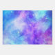 Envolver hojas de papel con fondo cósmico abstracto. Colores vibrantes de azul claro, rosa y violeta. Estrellas blancas dispersas por todo el mundo.