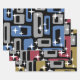 Colorido patrón abstracto retro de mediados de siglo moderno en gris negro y azul. El moderno MCM es un movimiento en diseño interior, diseño de productos, diseño gráfico, arquitectura y desarrollo urbano presente en todo el mundo, pero más popular en Estados Unidos, Brasil y Europa desde aproximadamente 1945 a 1970 durante el periodo post-Segunda Guerra Mundial de Estados Unidos. La decoración y la arquitectura de estilo MCM han experimentado un gran resurgimiento que comenzó a finales de los años 90 y que continúa hasta la fecha.