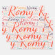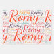 Romy. Mostrar y llevar este popular y hermoso nombre femenino diseñado como colorido nube de palabras hecho de tipografía de letras horizontales y verticales cursivas a mano en diferentes tamaños y adorables colores frescos. Usa tu nombre británico positivo o muestra al mundo a quien amas o adoras. Mercar con este suave trabajo de texto es un gran regalo, no sólo en el mes de la historia de las mujeres, o regalo de cumpleaños.