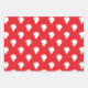 Silueta blanca de Santa Claus sobre fondo de patrón rojo.