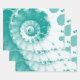 Un conjunto de tres hojas de papel de envoltura de 19x29" decorativas con una impresión fractal de espiral verde azulada monocromática azul