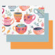 Este bonito conjunto de sábanas de envoltura incluye un ilustracion de tazas y hojas de té y dos colores sólidos tomados del ilustracion. Disfruta de tus nuevas tazas de té envolviendo hojas de papel!