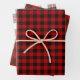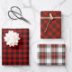 Diviértete con tu trío rojo de plástico, papel de envolvimiento. Presenta un control de barras de búfalo y otros patrones de Navidades rojos.