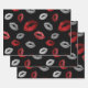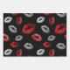 Hoja De Papel De Regalo Valentines Red Silver Glitter Lips on Black