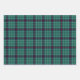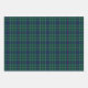 Envoltura de regalo para todo momento en variaciones de tartán de Clan Duncan. Una hoja cada una de las cuales incluye tartán de Duncan (manta verde y azul oscuro), tartán antiguo de Duncan (verde claro y azul claro) y tartán moderno de Duncan (manteca azul brillante y turquesa). Elija entre papel mate o semibrillante.
