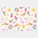 Elementos de verano como el sol, la bola de playa, el bikini, el gorra solar, el helado y las chanclas sobre un fondo blanco. Diseño perfecto para chicas, mujeres y niños