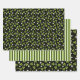 Un conjunto de tres hojas de regalo coordinadas en verde, negro y blanco.