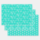 Lindos diseños de vida marina en verde turquesa para todo tipo de ocasión en hojas de papel de regalo de alta calidad. Estrellas de mar, dólares de arena, flores y conchas de caracol aparecen en cada una de las tres hojas. El color de fondo es un verde mar tropical. Este papel viene enrollado, por lo que no tiene líneas de doblez y el patrón es adecuado para casi cualquier ocasión.