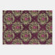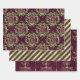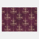 El París vintage es un borgoña profunda: papel envuelto en un patrón de oro rojo y brillante en tres estilos diferentes, entre ellos lámparas de araña, rayas y marcos ornamentales con rosas.
