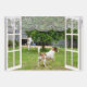 Los dos perritos de zorro blanco y marrón que miran a través de una ventana están explorando el jardín.