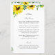 El diseño cuenta con un elegante ramo de flores de color claro y vegetación. Fácilmente personalizable con los detalles del menú de la recepción de bodas. En la parte posterior del menú se muestra el borde del girasol con nombres de pareja y fecha boda. Versión estrecha del menú y otros elementos bodas coincidentes disponibles en mi tienda. Diseño ©Rosalind Moore, Diseños de las Lanes de cerezo.