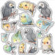Un grupo de loros y pegatinas de paracaídas de varios tamaños. También disponible en tamaños de pegatina más grandes y únicos.