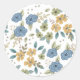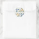 Flores azules y amarillas sobre un fondo blanco cremoso.
