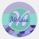 Aquí hay un divertido diseño de monograma verde azulado y morado que deja salir a jugar a tu sirena interior. Usa a estos pegatinas como sellos para sobres, o dáselos a tu niñita favorita — cuyo color favorito es la sirena — sobrina, hija de dios, o a cualquier otra persona que ame los brillantes acuas, tés, blues y púrpura de las escamas de una hermosa sirena.