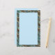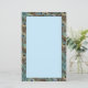 Hoja estacionaria de diseño de plumas de cola de pavo real Esta papelera fue diseñada con una foto de las plumas de cola de pavo real.