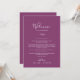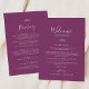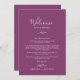 Estas cartas mínimas de bienvenida con bayas de hoja y tarjetas itinerarias son perfectas para un boda boho. El diseño presenta una sencilla silueta de hojas de vegetación en un romántico color violeta estival con un minimalista estilo bohemio-jardín. La parte delantera de la tarjeta incluye una carta de bienvenida y la parte trasera de la tarjeta incluye el itinerario del boda. Estas notas son perfectas para bodas de destino y bolsos de bienvenida para huéspedes del hotel.