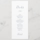 Esta mínima carta azul polvorienta de hojas para la cena y el menú de bebidas es perfecta para una elegante boda. El diseño presenta una sencilla silueta verde de pizarra clara azul con un estilo minimalista clásico. Este menú incluye el menú de la cena por un lado y el de las bebidas por el otro. Se puede utilizar para la recepción de bodas, la cena de ensayo o cualquier evento.