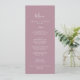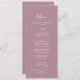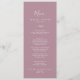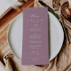 Esta carta de menú de boda con una hoja mínima es perfecta para un boda boho. El diseño presenta una sencilla silueta de hojas verdes de un romántico color rosa violeta con un minimalista estilo bohemio-jardín. Este menú se puede utilizar para la recepción de bodas, la cena de ensayo o cualquier evento.