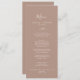 La carta de menú de la cena es minimalista, neutra y con hojas, ideal para los bodas boho. El diseño presenta una sencilla silueta de hojas de vegetación en un tono natural de tierra con un estilo bohemio desierto minimalista. Este menú se puede utilizar para la recepción de bodas, la cena de ensayo o cualquier evento.