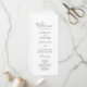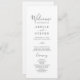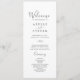 Este programa mínimo de bodas de color gris oscuro es perfecto para una boda elegante. El diseño presenta una sencilla silueta de vegetación en gris carbón vegetal con un estilo minimalista clásico. Incluya el nombre de la novia y el novio, la fecha y ubicación del boda, el mensaje de agradecimiento, el orden de servicio, la fiesta de novias y un monumento opcional "en memoria amorosa".