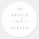 Estos sellos para sobres de boda púrpura con una mínima hoja son perfectos para una boda elegante. El diseño presenta una sencilla silueta verde de lavanda clara morada con un estilo minimalista clásico. Personalice la etiqueta con los nombres de la pareja.