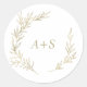 Estos mínimos sellos para sobres de monograma de oro de hoja son perfectos para una boda elegante. El diseño presenta una sencilla silueta de vegetación en un Relieve metalizado de imitación dorada de estilo minimalista clásico. Personalice la etiqueta con los nombres de la novia y del novio.