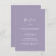 Esta mínima tarjeta de recepción de lavanda con hoja es perfecta para un boda boho. El diseño presenta una sencilla silueta de hojas de vegetación en tonos púrpura lila pastel con un estilo minimalista bohemio-jardín. Personalice esta tarjeta de gabinete de detalles con su información de recepción e incluya también la dirección de su sitio web boda.