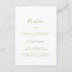Esta tarjeta de inserción de oro de hoja mínima es perfecta para una boda elegante. El diseño presenta una sencilla silueta de vegetación en un Relieve metalizado de imitación dorada de estilo minimalista clásico. Personalice esta tarjeta de gabinete de detalles con su información de recepción e incluya también la dirección de su sitio web boda.