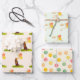 Patrón de nutria pastel neutro de género con este adorable juego de papel de envoltura. El envoltorio de regalo tiene nutrias y globos sobre fondo de melocotón, globos y nubes sobre fondo verde y puntos de polka sobre fondo amarillo.