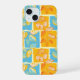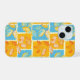 Esta obra de arte presenta un patrón vibrante y dinámico de hojas de otoño que se muestran dentro de un arreglo de cuadrículas de bloques coloridos. Las hojas se representan en tonos naranjas, amarillos y rojos, con detalles venosos intrincados que agregan textura y profundidad. Los bloques de fondo se alternan entre el azul audaz y el naranja cálido, creando un contraste sorprendente que realza el tema estacional. El diseño combina una estética gráfica moderna con la belleza natural del follaje otoñal, lo que da lugar a una composición animada y atractiva.
