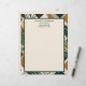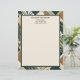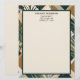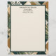 Un fondo de hojas y frondas de palmera superpuestos en formas geométricas verdes, marrones y marrones crea un membrete profesional muy agudo y orgánico. Hay mucho espacio para un pequeño logo a la derecha o a la izquierda del texto en la parte superior, si no se quiere el monograma de sombra detrás del texto. ¡Un diseño muy llamativo!