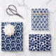 Este es un conjunto de tres hojas de envoltura con patrones de índigo marino y blanco. Este patrón se hace al estilo asiático, o japonés, de la impresión Shibori, que parece índigo, o marina, acuarela o tinte de corbata. ¡Disfrútalo!