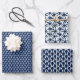 Este es un conjunto de tres hojas de envoltura con patrones de índigo marino y blanco. Estos patrones se hacen al estilo asiático o japonés de la impresión Shibori, que parece índigo, o marina, acuarela o tinte de corbata. ¡Disfrútalo!