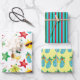 El Island Holiday cuenta con un trío de motivos divertidos. El primer patrón tiene sol, amigos y chanclas. El siguiente diseño es de rayas verdes y rojas. Y finalmente, un patrón de chanclas con Holly.