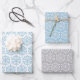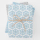 Envoltura de papel de 3 hojas con copos de nieve azules sobre fondo blanco o copos de nieve blancos sobre fondo gris o azul
