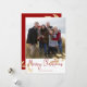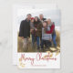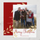 Tarjeta de foto de Navidad con hojas de oro elegantes | Tarjeta de vacaciones con fondo rojo. Estas elegantes tarjetas de vacaciones presentan hojas de pan de oro falsas y un saludo con letra moderna. Mucho espacio en la parte posterior para su saludo personalizado. Agregue su propia foto para una tarjeta verdaderamente personalizada.