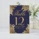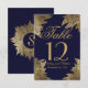 Hojas de oro en números de mesa de azul marino