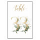 Tarjeta de número de mesa hermosa con un motivo botánico - una ilustración de acuarela de hojas verdes y doradas. Mesa 33. Por favor, revise todos los números disponibles